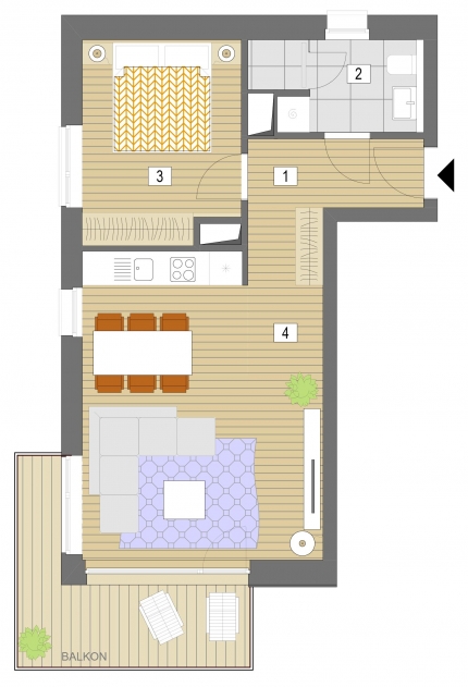 Numer mieszkania: D1 M08Status: RezerwacjaBudynek: Budynek D1Kondygnacja: 2Liczba pokoi: 1 Cena za m2: 6 750 złCena netto: 304 290 złCena brutto: 374 277 złPowierzchnia: 45,08 m2Korytarz: 5,82 m2Łazienka: 4,80 m2Salon/kuchnia: 24,24 m2Sypialnia: 10,22 m2 Plan sytuacyjny: Plan piętra: Plan mieszkania: