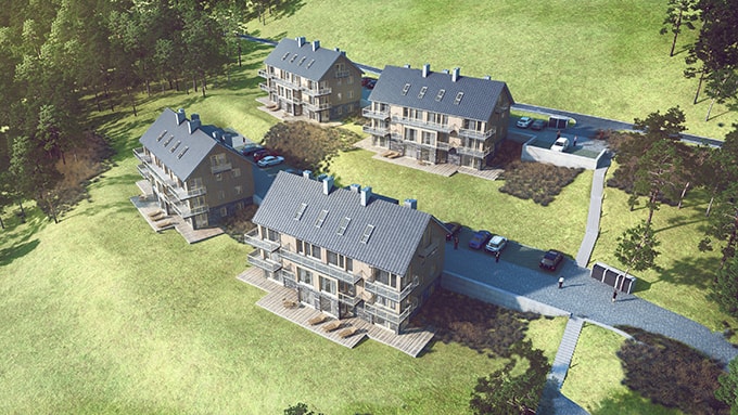 Przedsięwzięcie składa się z czterech niedużych, murowanych, willowych, bliźniaczych budynków – 3 kondygnacje nadziemne oraz poddasze. W każdym z nich znajduje się 14 funkcjonalnie zaprojektowanych lokali, a każdy z nich posiada obszerny balkon lub taras. Do każdego lokalu przypisane jest miejsce postojowe. Mając do „zagospodarowania” piękny widok w pięknym miejscu, każde mieszkanie posiada nieprzeciętnie duże okna i przeszklenia balkonów, które eksponują to, co najważniejsze - WIDOK na panoramę gór w PIĘKNYM MIEJSCU.