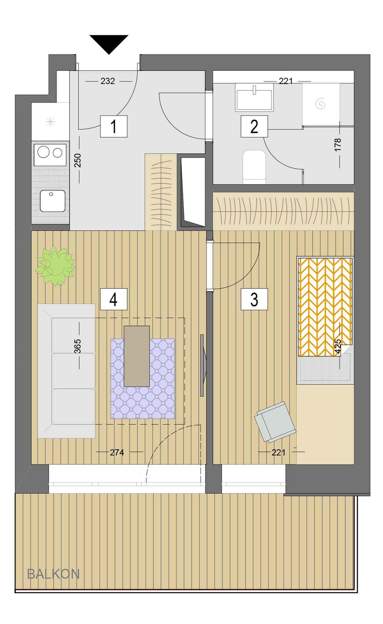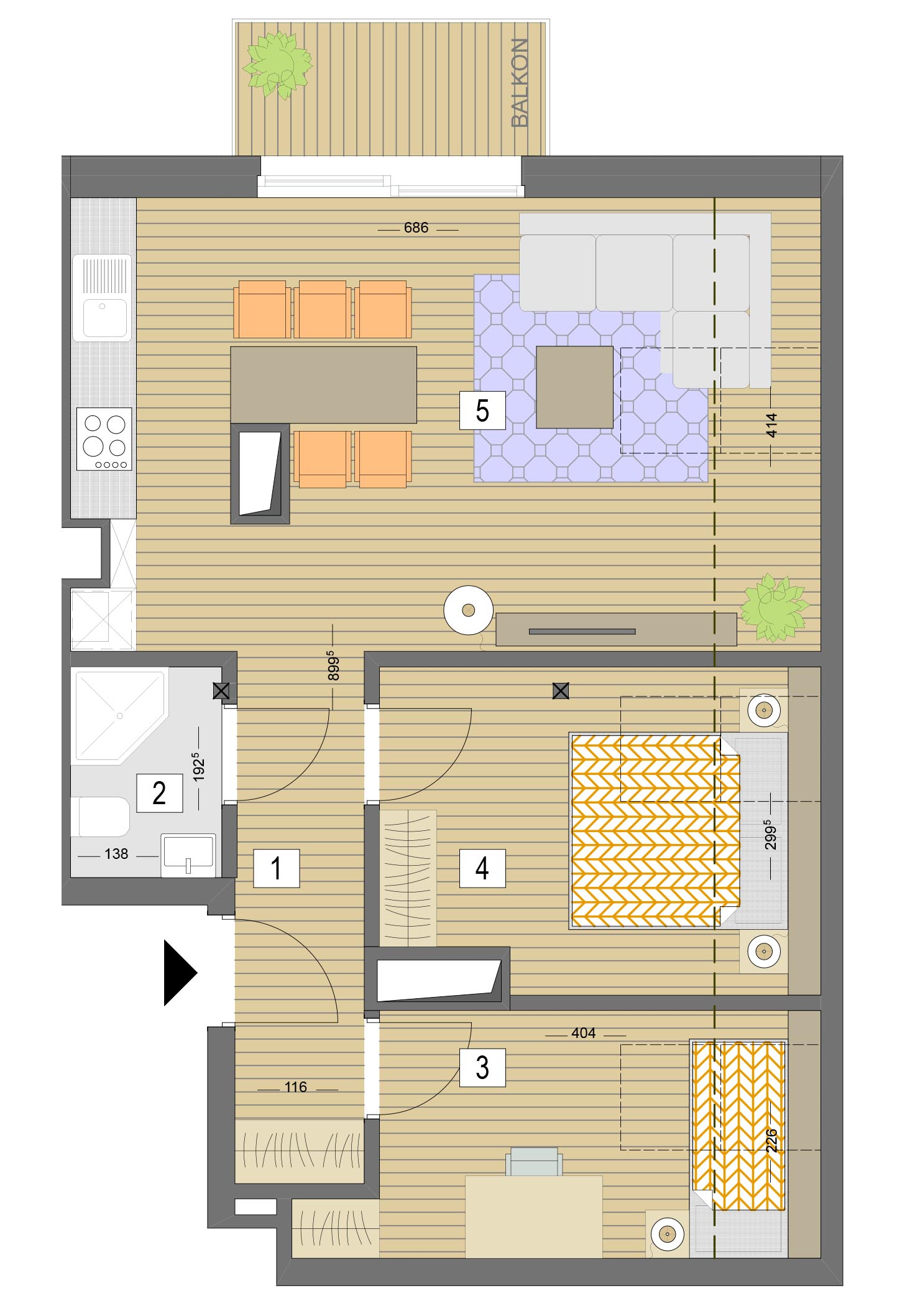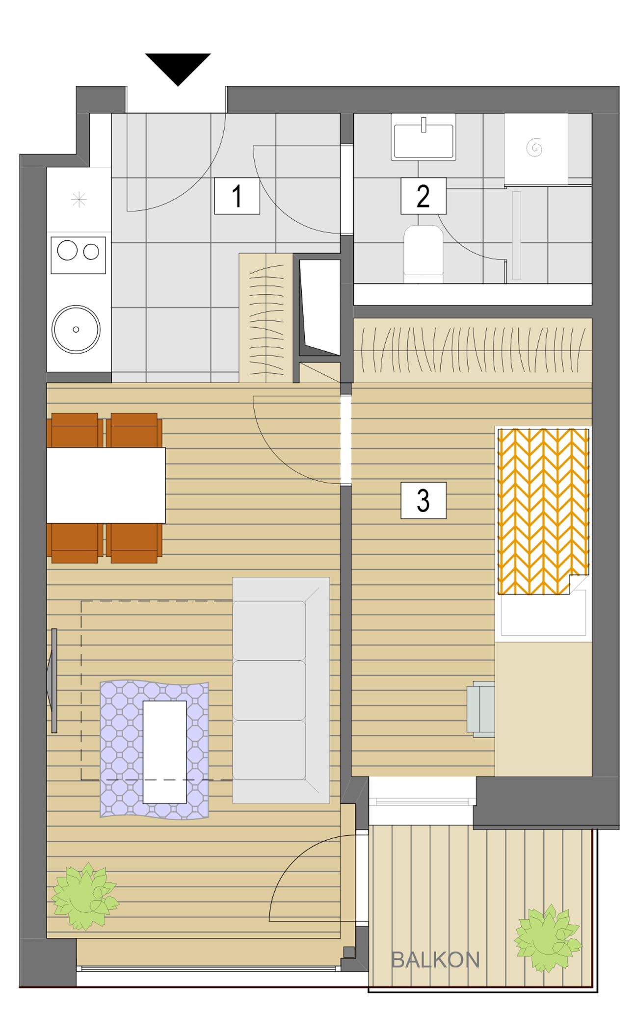 | Mieszkanie D1 M09 | 3 | 2 | 45,16 m2 |