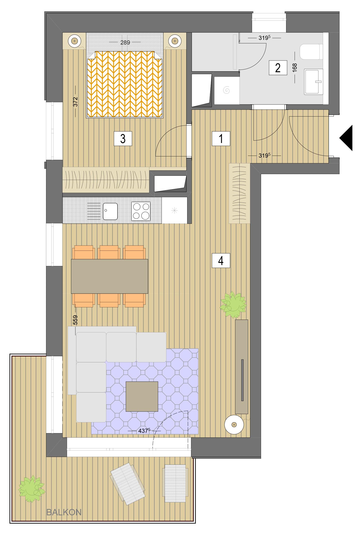 | Mieszkanie D1 M14 | 4 | 3 | 57,84 m2 |